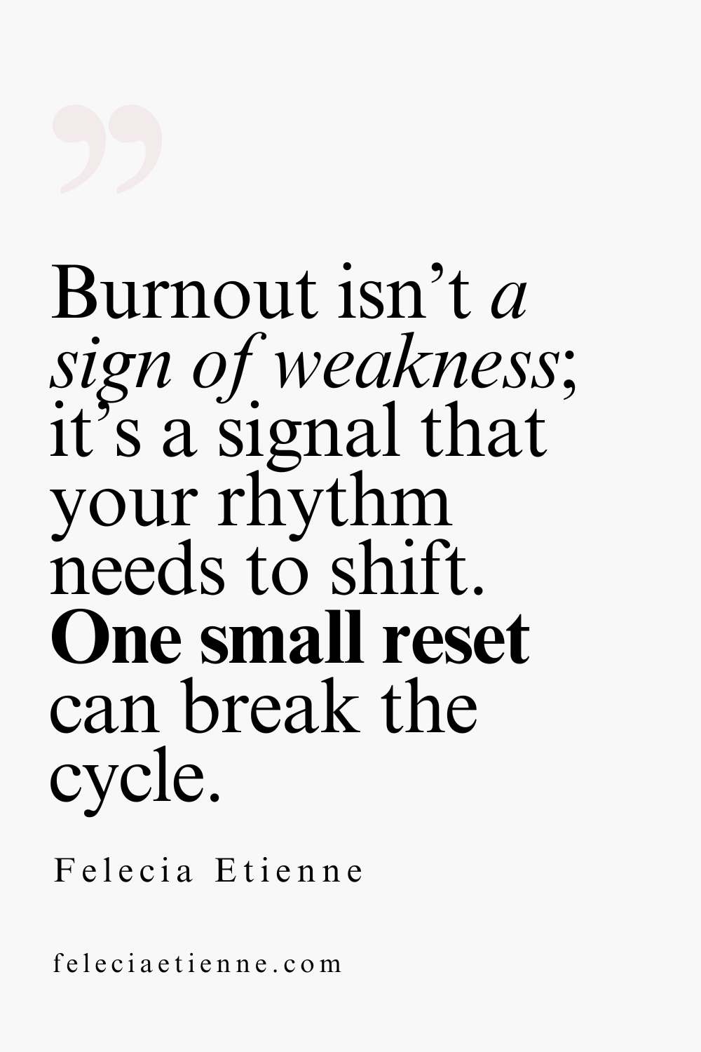 “Burnout isn’t a sign of weakness; it’s a signal that your rhythm needs to shift. One small reset can break the cycle.”