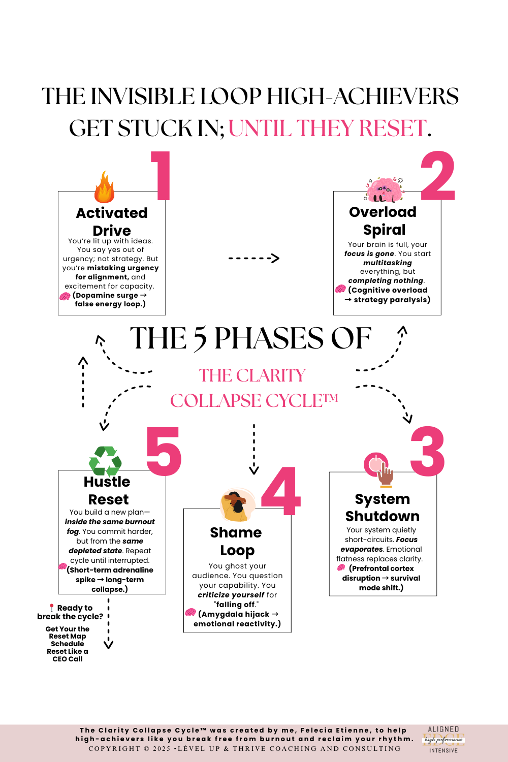 High achievers like us don’t burn out because we’re not capable. We burn out because we’re trapped in a cycle that wasn’t designed to support us. I call it the Clarity Collapse Cycle, and it’s the reason so many of us feel like we’re running on fumes, even when we’re “crushing it” on paper.