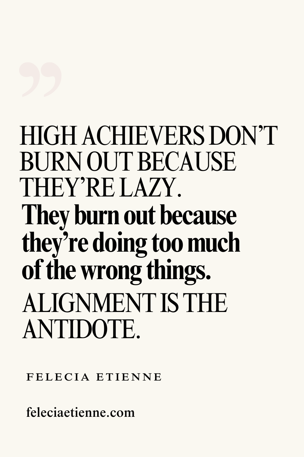 “High achievers don’t burn out because they’re lazy. They burn out because they’re doing too much of the wrong things. Alignment is the antidote.”